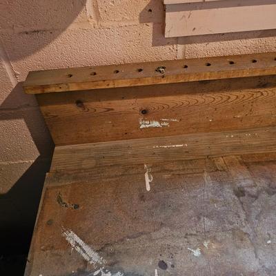 Solid wood bench with tool storage rack and 4" Blue Grass vise. Table is created from 2" x 4" construction, has small shelf underneath. Also has two outlet electric which plugs in by cord. Bench measures 60" x 32" x 40"H. See photos for details. Local pickup only. Winning bidder must bring assistance to help move and load this item due to its weight and/or size. Item is in basement near exit door. 1395 / 5545 sold -