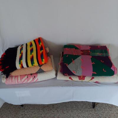 Beautiful vibrant colors in this Mexican style textile that appears to be a serape. Though typically worn, this could easily function as a blanket or rug. Light fringe on either end with stripes and patterns throughout. This piece measures 49" x 87", is most likely cotton. See photos for details. Shipping available. 1771 / 5545 sold -