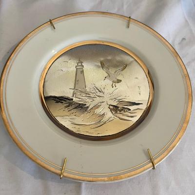 An assortment of Outer Banks and Lighthouse collectibles. Numerous books, a jigsaw puzzle (we cannot verify that all pieces are in box) plus two signed pieces of art; the larger piece appears to be an oil painting on canvas of a lighthouse. It is signed by J Hooks and is mounted in a gold painted frame (two sections on the front of the frame need to be glued). Frame measures 15.5†x 21.5â€. The other artwork appears to be a pencil drawing on canvas, it is signed by the artist Glenn Eure and dated. It is matted and mounted in a wood frame. Other items includes four wooden framed cross stitch of lighthouses, a Chokin China plate and more. Shipping Available. 1726 / 5545 sold -