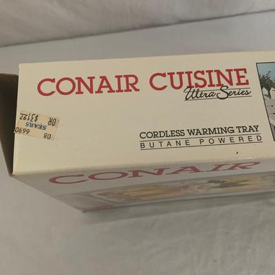 This lot contains a variety of kitchen warming devices. Included are: a West Bend Buffet Server II, an Invento Electric Plate Cosy, a fabric covered warming basket, a woven warming basket, and a Conair Cordless Warming Tray in its original box. All electric items powered on when plugged in. The Conair Warming Tray is butane powered so was not tested. For reference, the West Bend Buffet measures 25.5†x 11.5†x 4.75â€H. It contains one metal dish and two Pyrex dishes. Shipping available. 2355 / 5545 sold -