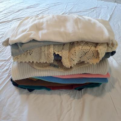 Lot includes approximately 40 pieces of 1960s/1970s vintage clothing in roughly size small. There are matching sets, skirts, trousers, blouses and jackets. Some condition due to age. Please see photos for details. Shipping available. Clothing racks are props and are not included in the auction! 3540 / 5545 sold -