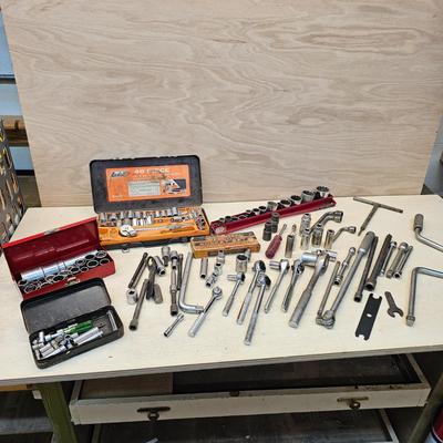 This lot includes nine vintage saws and one green wooden rack. The wooden rack has eight slots, leaving one saw out. The largest saw measures 17” x 3” x 5”H and can fit in the rack for reference. The several of the saws appear to be stamped with “warranted superior.” Winning bidder will need a flathead screwdriver to remove the rack from the wall. Shipping available. 1644 / 5844 sold -