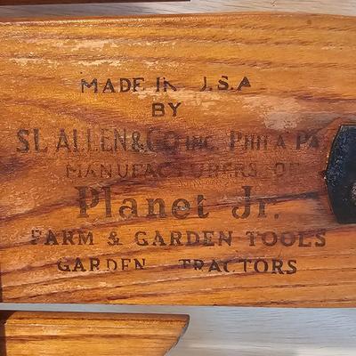 Set of eight tools for lathe work. Tools by Benjamin's Best include gouges, chisel, parting tool and more. Solid wood handles. Tools are approximately 16" long. Single additional item is 18" long. See photos for details. Storage rack measures 26" x 5.5" x 22"H. This must be takem down by the winning bidder at auction pick up. See photos for details. Shipping available. 2493 / 5844 sold -