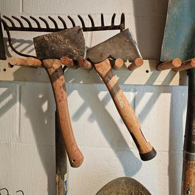Set of eight tools for lathe work. Tools by Benjamin's Best include gouges, chisel, parting tool and more. Solid wood handles. Tools are approximately 16" long. Single additional item is 18" long. See photos for details. Storage rack measures 26" x 5.5" x 22"H. This must be takem down by the winning bidder at auction pick up. See photos for details. Shipping available. 2495 / 5844 sold -