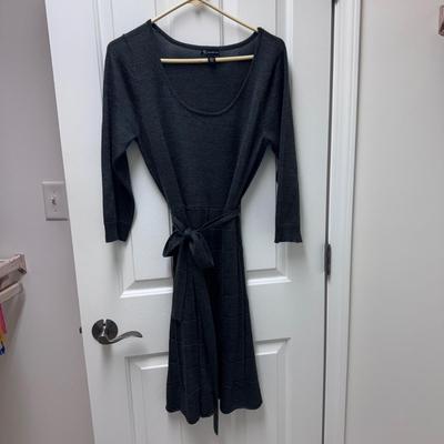 This lot includes one sweater dress from New Directions, one pink L.L Bean cardigan, a light blue short sleeve sweater with matching cardigan from Brooks Brothers, and a matching sweater vest and zip up cardigan by Emma James. It also includes a 100% cashmere animal print sweater by Madison, a red sweater from Calvin Klein, and one Liz Claiborne sweater. See pictures for sizes of each item. The Brooks Brothers matching sweater set is stained and has a small amount of mold on the tag - see pictures included. It appears to be cleanable. Shipping available. 2290 / 4699 sold -