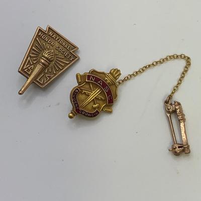 A collection of approximately 35 small items, some vintage, including various pins, a few pendants, some golf items, and more. Please see photos for inventory. For reference, the Grove Park Inn player badge is 1.5” x 2”. The two very small crosses have 14K hallmarks. The ASAE pin has a 10K hallmark. The NSHS is marked Sterling. All sales are final. No returns or refunds. Please bid accordingly. Shipping available. 2106 / 6765 sold -