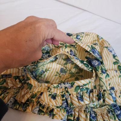 This lot contains a Longaberger basket, a wooden lid (15" x 8"), plastic inserts, a plate and six mugs and cloth basket liners. The fixed handled basket (13" x 12" x 16"H) and the green toned picnic basket do not have brand names. The cloth liners are all Longaberger, unless photographed. The six mugs have a thick sturdy feel. The umbrella appears to not have been used. The largest plastic liner measures 11" x 11" x 3"H. See pictures for details and more collectibles. Shipping available. 2729 / 6765 sold -