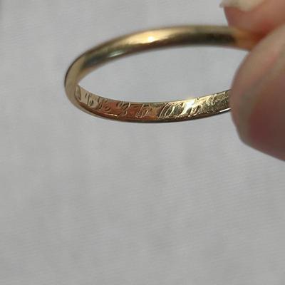 Two 18K gold rings. The size 6.5 has a small reddish/brown stone and simulated diamond. The plain size 8 band has some initials and date engraved inside. Both are stamped 18K. See photos for other marks. All sales are final. No returns or refunds. Please bid accordingly. Shipping available. 3195 / 6765 sold -