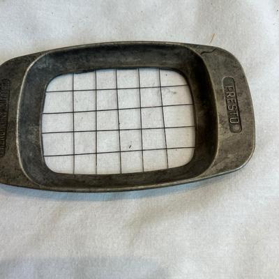 A large assortment of vintage kitchen, tools and utensils. Three large serving spoons and one metal ladle as well as four serving forks measure approximately 13”L each. Five Metal rotary egg beaters measure each approximately 3” x 4” x 13”H. Three wooden handled dough blenders are each approximately 4.5” x 1.5” x 5”H. Two flour sifters, the larger one is 4.5”D x 6”H. Two metal hair clippers measure approximately 2” x 5”L each and a metal razor which is 1.75”W x 3.5”L. The milk can measures approximately 4”D X 8”H. See photos for more details on all items included. Shipping available. 395 / 6765 sold -