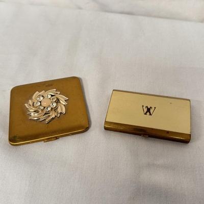This lot includes three vintage coin wallets with sturdy clasps. It also includes six compact mirrors with powder from the following: Cara Nome Langloise Rogue, Du Barry Compact Bloom, Dorset Fifth Avenue, Elsie de Wolfe and two that are Stratton. There is also one compact double frame that has two lovely vintage pictures inserted. The largest coin wallet is the white one that measures 6” x 5”H. Shipping available. 755 / 6765 sold -