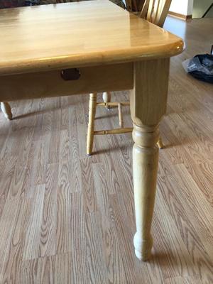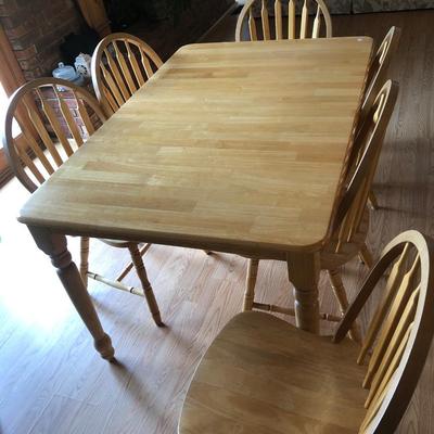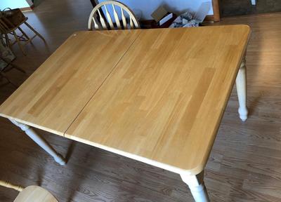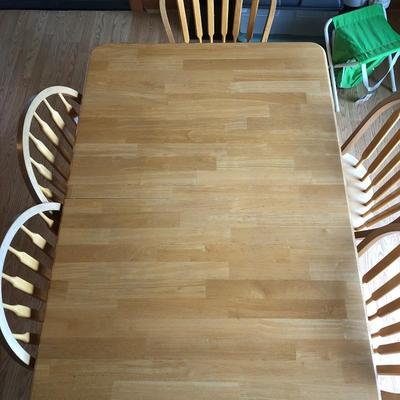 As shown, this item is in good, used condition with no visible stratched or damage to the table top. Marked as “Made in Malyasia” with no makers marks. All chairs are sturdy and match the table, only one slight ding to on one chair (as shown), but barely noticable. Table measurement: 60 x 36 x 30 h Chair measurements: 18 x 17.5 x 36 h 60 / 2652 sold -
