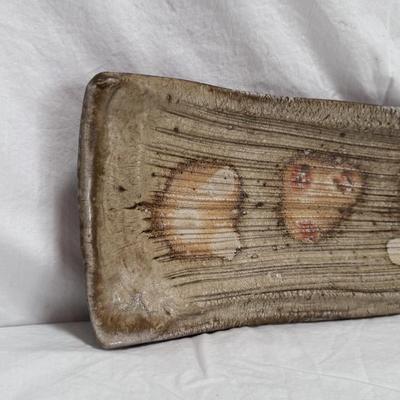 This lot includes one Akira Satake plate made of ceramic. The plate has a zip tie on the back for hanging purposes. There is one small crack on this piece - see pictures included. The plate measures 19.35” x 6.5” x 1.5”H. It appears to be signed on the back with Satake. Per the homeowner, piece was purchased from the artist in 2013. Shipping available. 1350 / 3707 sold -