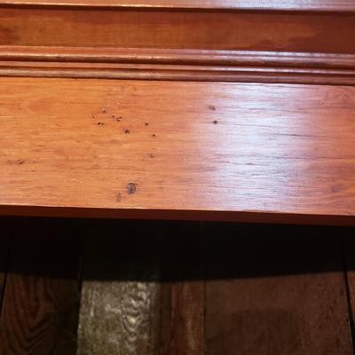 This possibly antique corner cupboard measures 43" x 27" x 79"H. The glass has that wavy look with air bubbles to show its age. There is a key that locks the top and bottom cabinet. The left side doors are secured with a hook and eye. Local pickup only. Winning bidder must bring assistance to help move and load this item due to its weight and/or size. 1383 / 3707 sold -