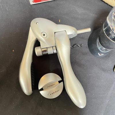 A nice selection of all things wine. Lot includes an Ozeri wireless electric opener, a rabbit opener with foil cutter, bottle stops, a Vinturi decanter, four stylish bottle tote bags, and stemware. The stemware comes in boxes from World Market, but the glassware is unmarked. Six 9” flutes, plus six red wine glasses- three are slightly different and barely shorter than the other three. Ozeri electric wine opener turned on when plugged in, package states it turns blue when charging. See images. Local pick up only. 2319 / 3707 sold -