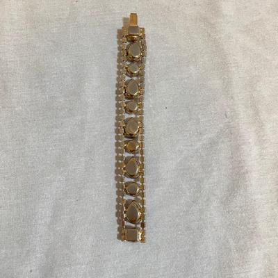 Three glitzy bracelets, a sunburst brooch/pendant and vintage style clip earrings. The earrings and the silver bracelet with the fold-over clasp are marked Trifari. The Trifari bracelet is missing four rhinestones. The 2”D sunburst brooch and the bracelet with the purple stones and gems do not appear to be marked. The stretch bracelet has all of its rhinestones and is marked Made in Japan. See images. Shipping available. All sales are final. No returns or refunds. Please bid accordingly. 2859 / 3707 sold -