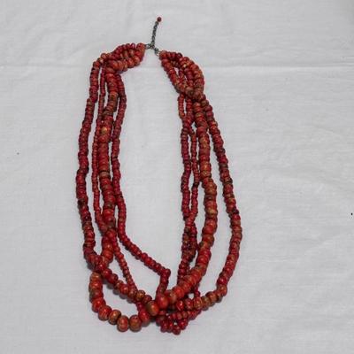 This lot includes six fashion necklaces in various shapes and colors. Two of the necklaces have name brand tags attached - one reading Sylca and the other Camenae. See pictures for necklace details. The longest necklace is the multi-layered, orange beaded necklace that measures 32”L. Local pickup only. All sales are final. No returns or refunds. Please bid accordingly. 2899 / 3707 sold -