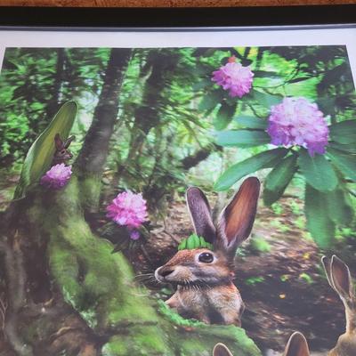 This auction is for an original print of "Tail of the Rabbit King" by Asheville local artist Daryl Slaton. It depicts rabbits in the woods surrounded by pink and purple rhododendron flowers. The piece is under glass in a wooden frame. It is titled and signed in pencil with the addition of "artists proof" added in the corner. Item measures 22" x 1" x 26"H. Shipping available. Shipping can be costly. We suggest contacting our preferred local shipping provider, Postage Express, with dimensions and getting an estimate before bidding: 828-255-9250 or shipping@postageexpressnc.com 3100 / 3707 sold