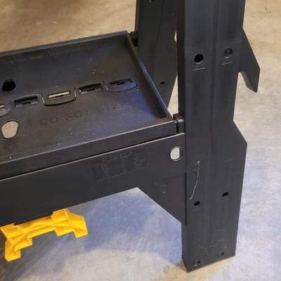 A Craftsman brand tool bench and peg board. The bench is made from metal and wood. Bench measures 60" x 26" x 84"H with peg board. Table itself sits 41" off the ground. Includes hooks and small racks for peg board. Also includes two plastic slide-out shelves and original paperwork. This item is located in the garage and has access from the driveway. Local pickup only. Winning bidder must bring assistance to help move and load this item due to its weight and/or size. 3482 / 3707 sold -