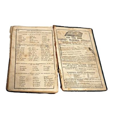 4 Antique Educational Books 1. Intellectual Arithmatic by Induction & Analysis - By: Joseph Ray, MD - Published in 1857 By: Winthrop B Smith & Co Cincinnati OH - Acceptable - Worn,scuffed & stained cover, writing inside front & back covers & stained, bent & ripped pages 2. The Elementary Spelling Book: An Improvement on the American Spelling Book - By: Noah Webster, LLD - Published in 1902 By: The American Book Company, Cincinnati, New York Chicago - Acceptable - Torn, faded & stained cover, writing inside covers & stained pages 3. The Elementary Spelling Book - By: Noah Webster, LLD - Published in 1908 By: Dappleton & Co New York - Acceptable - pages missing, torn pages & riooed, worn cover 4. The Normal Mind: An Introduction to Mental Hygiene & the Hygiene of School Instruction - By: William H Burnham, PhD - Published in 1924 By: S Appleton & Co - Good - cracked spine, library stickers, writing inside cover, stained cover 50 / 481 -