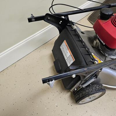 Nice Honda gas lawnmower with 18" cut, power drive and variable speed. Front and rear wheels height adjustable, all drive and throttle controls on handle. Includes grass catcher and another piece. Mower measures 21" x 58" x 42"H open and 21" x 40" x 19"H closed with handle folded down. Mower pulls clean but untested. See photos for details. Local pickup only. 1195 / 1517 sold -