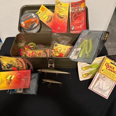 I found the dardevle in a tackle box. It doesn’t look like it’s been used. I think the adhesive on the box came loose. The smaller one is in rough shape though. The two matching orange are both Rapala (different sizes). There are two lazy ikes and the bug looking one is a Rebel. The Mepps range from 1-3 59 / 413 sold -