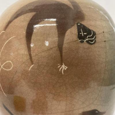 Jamie Davis pottery jar with lid.12 1/2” to tip of lid. Excellent condition. Marked JD on bottom.