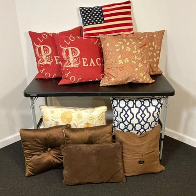 Cindy Crawford Home Sectional Sofa | Three part Cindy Crawford Home sectional sofa. Made by H M Richard’s Inc. in a coffee upholstery with stitching. Main piece could be a stand alone sofa, with two additional sections measuring 60” and 65” in length. Three throw pillows included. - l. 98” x w. 40” x h. 30” mm (Main Sofa Section) 37 / 92 -