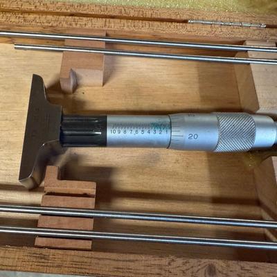 Vintage measuring tool in wood box as shown 13 / 919 sold -
