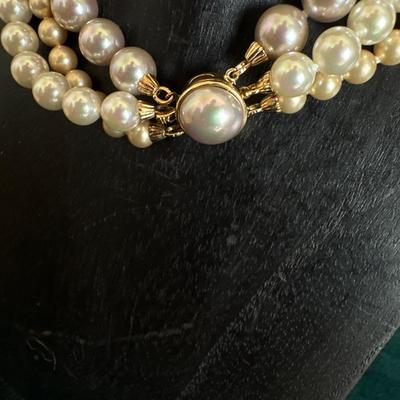 Majorica Pearls Triple Strand 3 different color pearls 1072 / 1142 sold -