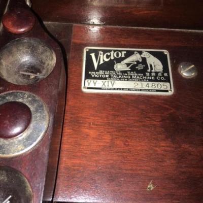 The XIV was introduced in 1910 to fill the gap between the new tabletop VV-X and VV-XI models and the $200 flagship VV-XVI. The earliest XIV models had a square, rather plain look, with minimal decorative trim and unusual curved Queen Anne legs (left). These models used gold plated hardware. The design was modernized in late 1912 (right), initially appearing more like an oversized version of its cheaper cousin, the VV-XI. At the same time, the gold plating on the hardware was replaced with a nickel plate. The cabinet was again changed in 1914 (below left), and increased in size, appearing more and more similar to its "big brother" VV-XVI model. The final cabinet change occurred in 1917 (below right) until production was ended in 1921. The XIV was available in a variety of wood finishes, but mahogany was by far the most popular choice. The early Queen Anne model is sought-after by collectors today. The original 1910 selling price of the XIV (in standard mahogany, oak or walnut) was $150.00. At the end of its production run, it sold for $200.00 This auction includes all of the records. Pickup in Dallas Metro Plex or can arrange shipping from Dallas at buyers expense (insurance required). Please let us know if you have any questions. 11 / 19 -