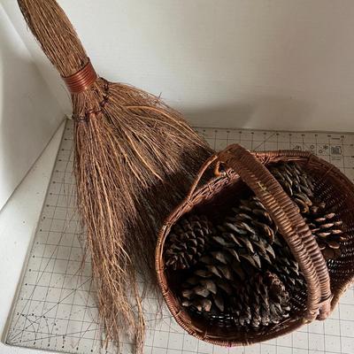 Handmade witch broom with pinecone-filled woven basket. 1810 / 2788 sold -