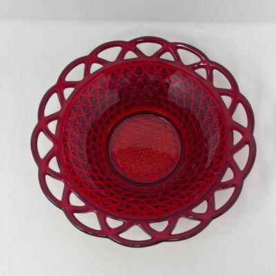 Imperial glass ruby red cane bowl is 9.5” round x 3” tall. 2362 / 2697 sold -