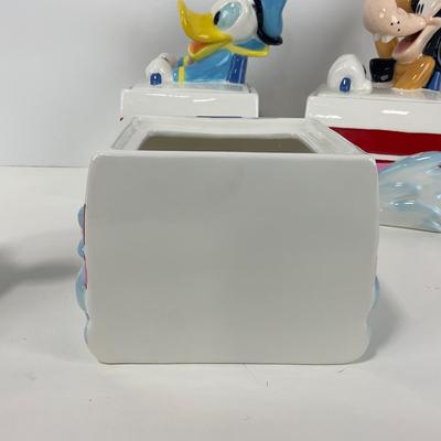 Disneyland Matterhorn Bobsled kitchen canister set. Appears to be in good shape, apart from a few minor scuffs and scrapes. Please see photos for details and condition. Any condition statement is given as a courtesy to a client, is an opinion, and should not be treated as a statement of fact. Reference to condition written, oral or within a condition report shall not be regarded as a full account of condition and may not include all defects, alterations, or restorations. Absence of a condition report does not imply a lot is flawless or lacking imperfections or damage. Katherine’s Auction & Appraisal Service shall have no responsibility for any error or omission. Returns shall not be accepted on the basis of condition. ::: Shipping is available on this lot. If you require shipping you must let us know at the close of the auction. We will coordinate with you after the item has been won. Shipping fees will include insurance up to or exceeding the value of all items being mailed. If you have any questions regarding this lot please contact the auctioneer either via this website, by direct email or by phone. PICK UP TIMES and other important information can be found in the TERMS and DESCRIPTION of the auction. Please take a look for pertinent information. Thanks! 2018 / 2974 sold -
