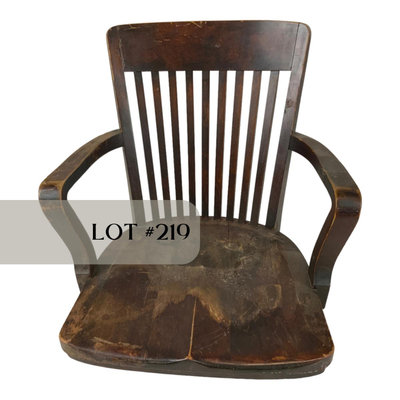 Dark Wood Office Chair, no base. //::\\ Please see photos for details and condition. No attempt has been made to hide any imperfections. All items listed in this auction are warehouse items, and need to be cleaned. A majority of the items need restoration as well. All items are sold AS IS and WITHOUT GUARANTEE. If you are uncertain about an item, DO NOT BID. Due to the nature of this online auction in-person inspection is HIGHLY recommended. All Sales are FINAL. Pick Up Times are FIRM. Please confirm with your own schedule that you can pick up in the scheduled times listed in the Terms and Conditions. Any questions please message the auctioneer. DO NOT Contact The Harp Gallery. 2111 / 4745 -