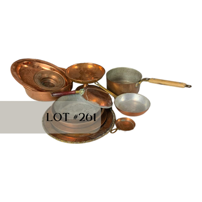 12 miscellaneous copper pieces. Copper is always a good idea. //::\\ Please see photos for details and condition. No attempt has been made to hide any imperfections. All items listed in this auction are warehouse items, and need to be cleaned. A majority of the items need restoration as well. All items are sold AS IS and WITHOUT GUARANTEE. If you are uncertain about an item, DO NOT BID. Due to the nature of this online auction in-person inspection is HIGHLY recommended. All Sales are FINAL. Pick Up Times are FIRM. Please confirm with your own schedule that you can pick up in the scheduled times listed in the Terms and Conditions. Any questions please message the auctioneer. DO NOT Contact The Harp Gallery. 2500 / 4745 sold