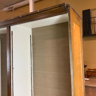 Large Wardrobe Mirrored Cabinet. This cabinet comes apart for ease of transport. //::\\ Please see photos for details and condition. No attempt has been made to hide any imperfections. All items listed in this auction are warehouse items, and need to be cleaned. A majority of the items need restoration as well. All items are sold AS IS and WITHOUT GUARANTEE. If you are uncertain about an item, DO NOT BID. Due to the nature of this online auction in-person inspection is HIGHLY recommended. All Sales are FINAL. Pick Up Times are FIRM. Please confirm with your own schedule that you can pick up in the scheduled times listed in the Terms and Conditions. Any questions please message the auctioneer. DO NOT Contact The Harp Gallery. 2600 / 4745
