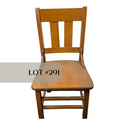 Solid, oak chair. Very sturdy and would work well with a desk. Has metal cigar band protectors on the screws. Please see photos for details and condition. //::\\ Please see photos for details and condition. No attempt has been made to hide any imperfections. All items listed in this auction are warehouse items, and need to be cleaned. A majority of the items need restoration as well. All items are sold AS IS and WITHOUT GUARANTEE. If you are uncertain about an item, DO NOT BID. Due to the nature of this online auction in-person inspection is HIGHLY recommended. All Sales are FINAL. Pick Up Times are FIRM. Please confirm with your own schedule that you can pick up in the scheduled times listed in the Terms and Conditions. Any questions please message the auctioneer. DO NOT Contact The Harp Gallery. 2741 / 4745 -