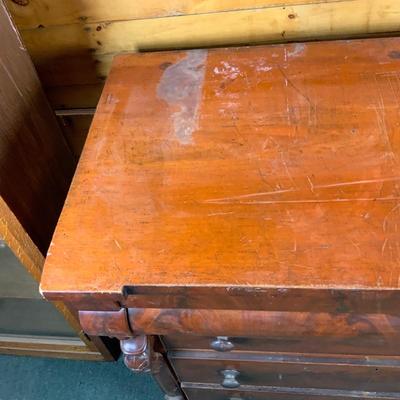 Tall Empire Chest of Drawers. Needs some restoration to bring it back to its original glory. //::\\ Please see photos for details and condition. No attempt has been made to hide any imperfections. All items listed in this auction are warehouse items, and need to be cleaned. A majority of the items need restoration as well. All items are sold AS IS and WITHOUT GUARANTEE. If you are uncertain about an item, DO NOT BID. Due to the nature of this online auction in-person inspection is HIGHLY recommended. All Sales are FINAL. Pick Up Times are FIRM. Please confirm with your own schedule that you can pick up in the scheduled times listed in the Terms and Conditions. Any questions please message the auctioneer. DO NOT Contact The Harp Gallery. 2997 / 4745 sold -
