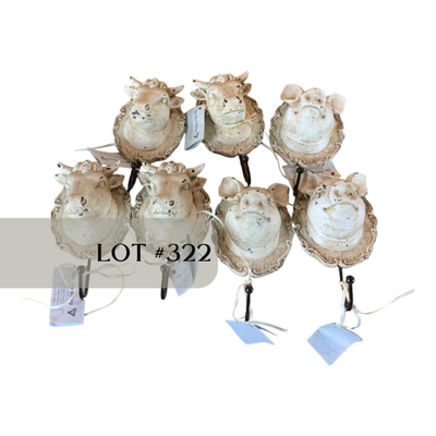 Seven Reproduction French style Livestock Hooks. Would make wonderful gifts. //::\\ Please see photos for details and condition. No attempt has been made to hide any imperfections. All items listed in this auction are warehouse items, and need to be cleaned. A majority of the items need restoration as well. All items are sold AS IS and WITHOUT GUARANTEE. If you are uncertain about an item, DO NOT BID. Due to the nature of this online auction in-person inspection is HIGHLY recommended. All Sales are FINAL. Pick Up Times are FIRM. Please confirm with your own schedule that you can pick up in the scheduled times listed in the Terms and Conditions. Any questions please message the auctioneer. DO NOT Contact The Harp Gallery. 3006 / 4745 sold -
