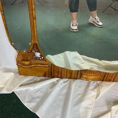 Elegant Tri-Mirror. Nice cut-outs for detailing. //::\\ Please see photos for details and condition. No attempt has been made to hide any imperfections. All items listed in this auction are warehouse items, and need to be cleaned. A majority of the items need restoration as well. All items are sold AS IS and WITHOUT GUARANTEE. If you are uncertain about an item, DO NOT BID. Due to the nature of this online auction in-person inspection is HIGHLY recommended. All Sales are FINAL. Pick Up Times are FIRM. Please confirm with your own schedule that you can pick up in the scheduled times listed in the Terms and Conditions. Any questions please message the auctioneer. DO NOT Contact The Harp Gallery. 3455 / 4745 -