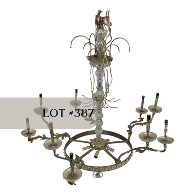 Lead Crystal Chandelier, electrified. Some of the Crystal “candle catchers†need repair. Some chips noted. //::\\ Please see photos for details and condition. No attempt has been made to hide any imperfections. All items listed in this auction are warehouse items, and need to be cleaned. A majority of the items need restoration as well. All items are sold AS IS and WITHOUT GUARANTEE. If you are uncertain about an item, DO NOT BID. Due to the nature of this online auction in-person inspection is HIGHLY recommended. All Sales are FINAL. Pick Up Times are FIRM. Please confirm with your own schedule that you can pick up in the scheduled times listed in the Terms and Conditions. Any questions please message the auctioneer. DO NOT Contact The Harp Gallery. 3520 / 4745 -