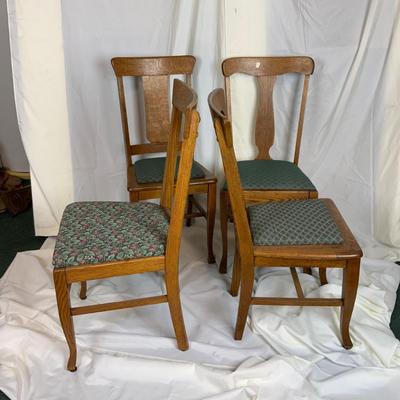 Lot of 4 Mis-Matched Oak Chairs. Nice solid chairs. If you reupholster them to match no one will notice that they don’t! //::\\ Please see photos for details and condition. No attempt has been made to hide any imperfections. All items listed in this auction are warehouse items, and need to be cleaned. A majority of the items need restoration as well. All items are sold AS IS and WITHOUT GUARANTEE. If you are uncertain about an item, DO NOT BID. Due to the nature of this online auction in-person inspection is HIGHLY recommended. All Sales are FINAL. Pick Up Times are FIRM. Please confirm with your own schedule that you can pick up in the scheduled times listed in the Terms and Conditions. Any questions please message the auctioneer. DO NOT Contact The Harp Gallery. 3533 / 4745 -