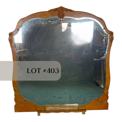 Elegant Vanity Mirror. Beautiful wood and wonderful carvings. //::\\ Please see photos for details and condition. No attempt has been made to hide any imperfections. All items listed in this auction are warehouse items, and need to be cleaned. A majority of the items need restoration as well. All items are sold AS IS and WITHOUT GUARANTEE. If you are uncertain about an item, DO NOT BID. Due to the nature of this online auction in-person inspection is HIGHLY recommended. All Sales are FINAL. Pick Up Times are FIRM. Please confirm with your own schedule that you can pick up in the scheduled times listed in the Terms and Conditions. Any questions please message the auctioneer. DO NOT Contact The Harp Gallery. 3657 / 4745 -