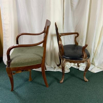 Mis-Matched Chair Duo. A couple great project pieces! //::\\ Please see photos for details and condition. No attempt has been made to hide any imperfections. All items listed in this auction are warehouse items, and need to be cleaned. A majority of the items need restoration as well. All items are sold AS IS and WITHOUT GUARANTEE. If you are uncertain about an item, DO NOT BID. Due to the nature of this online auction in-person inspection is HIGHLY recommended. All Sales are FINAL. Pick Up Times are FIRM. Please confirm with your own schedule that you can pick up in the scheduled times listed in the Terms and Conditions. Any questions please message the auctioneer. DO NOT Contact The Harp Gallery. 3892 / 4745 -