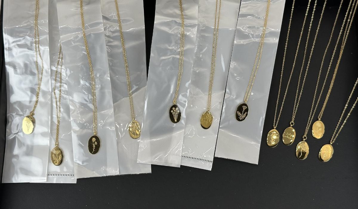 1. Birth Month Flower Collection Necklaces 12 Months MIX LOT. This is not real gold; it is a gold-colored piece matched to an 18K tone._x000D_