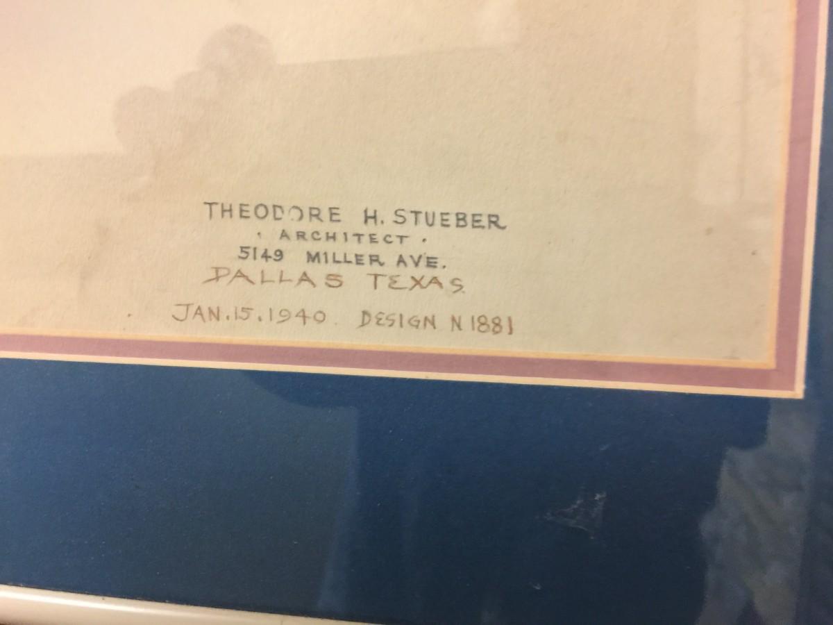 Large rendering from 1940 Dallas Texas. Has a small tear in the media as seen in the pictures. Otherwise in great condition. 1993 which is when I mounted it in the current frame since 1993 . 32"X 22" Please message with any questions.