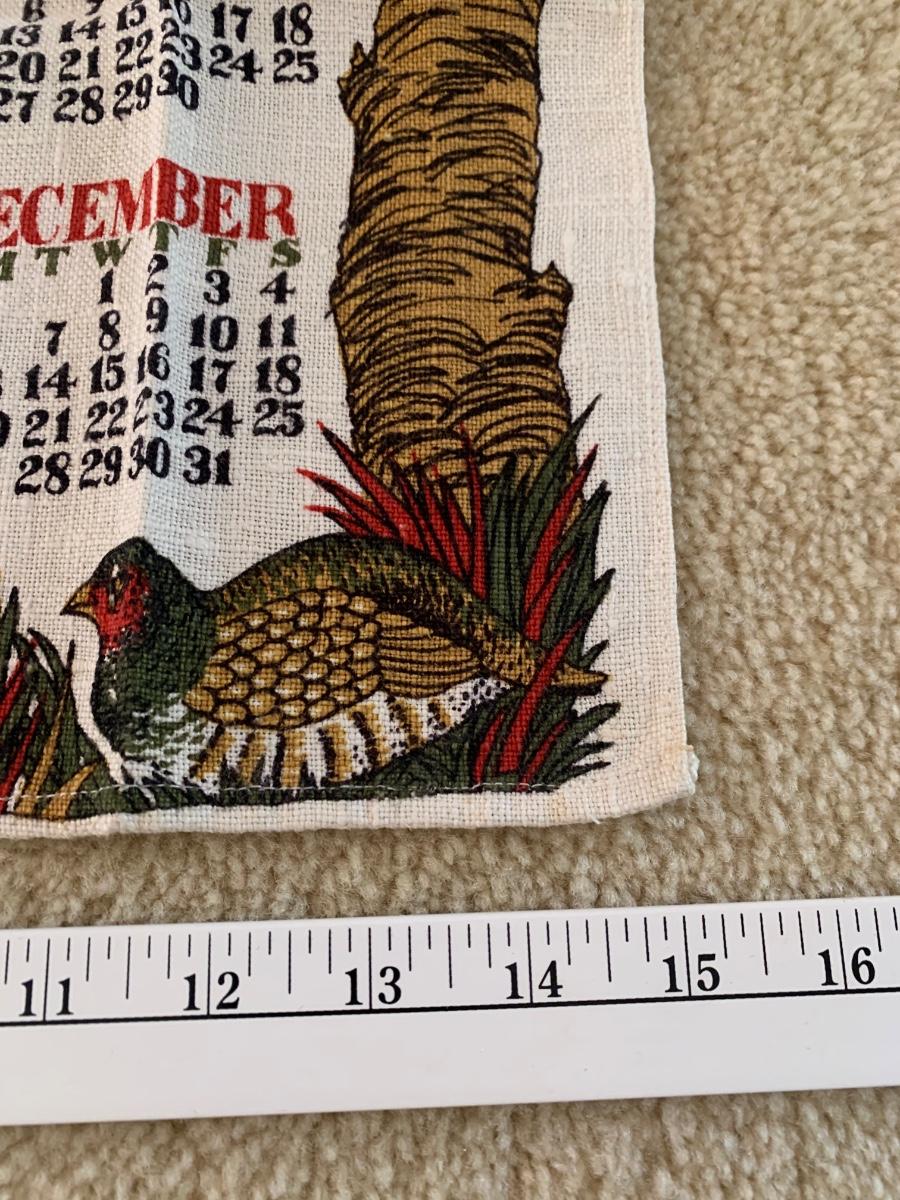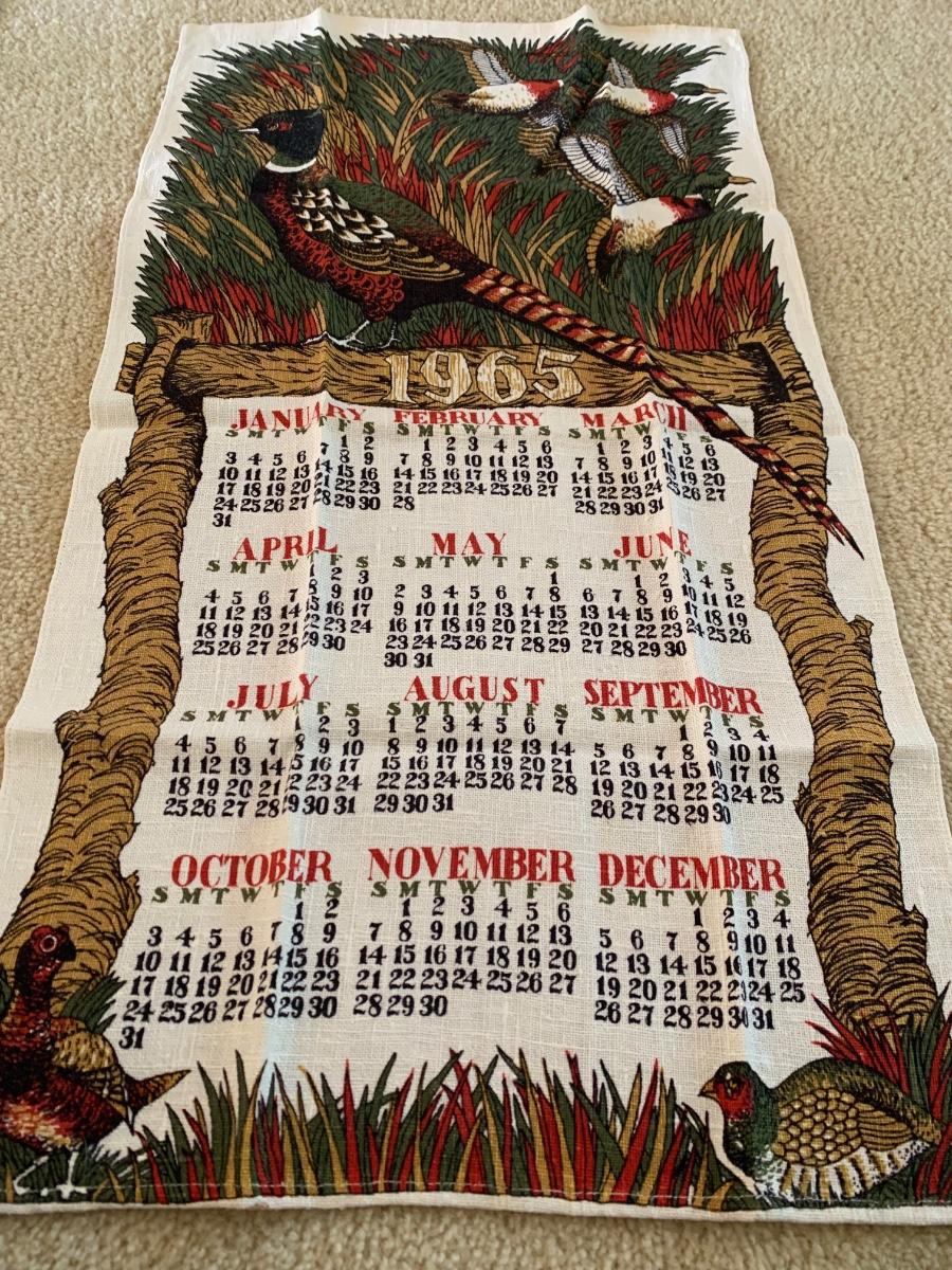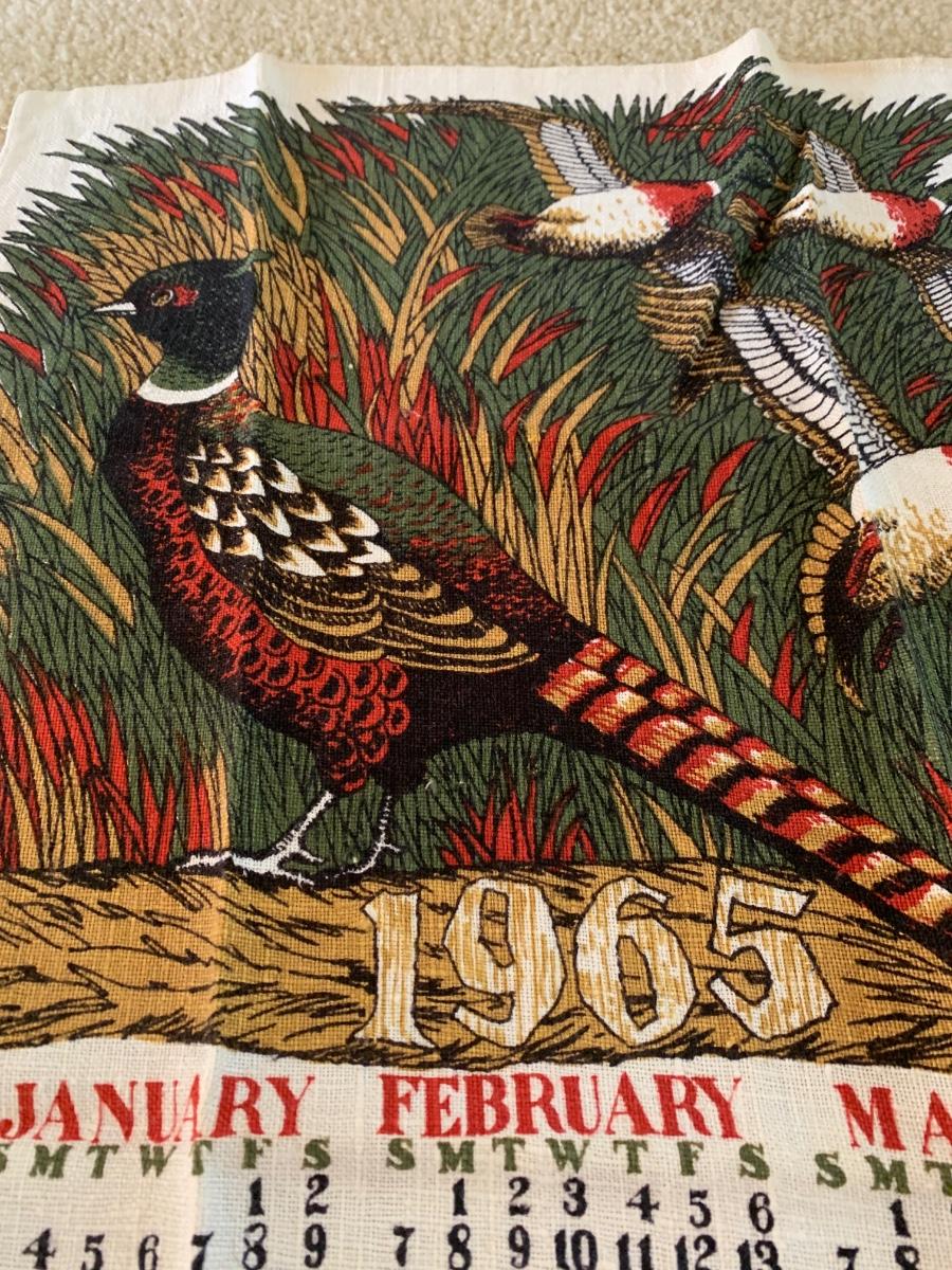 1965 Tea Towel Calendar Pheasant Ducks SHIPS FREE