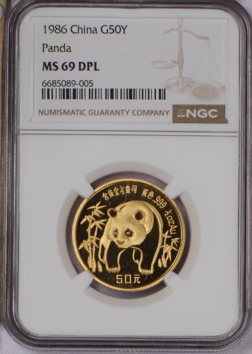 1986 Gold Panda 1/2 oz. 50 Yuan NGC MS69 Deep Prooflike