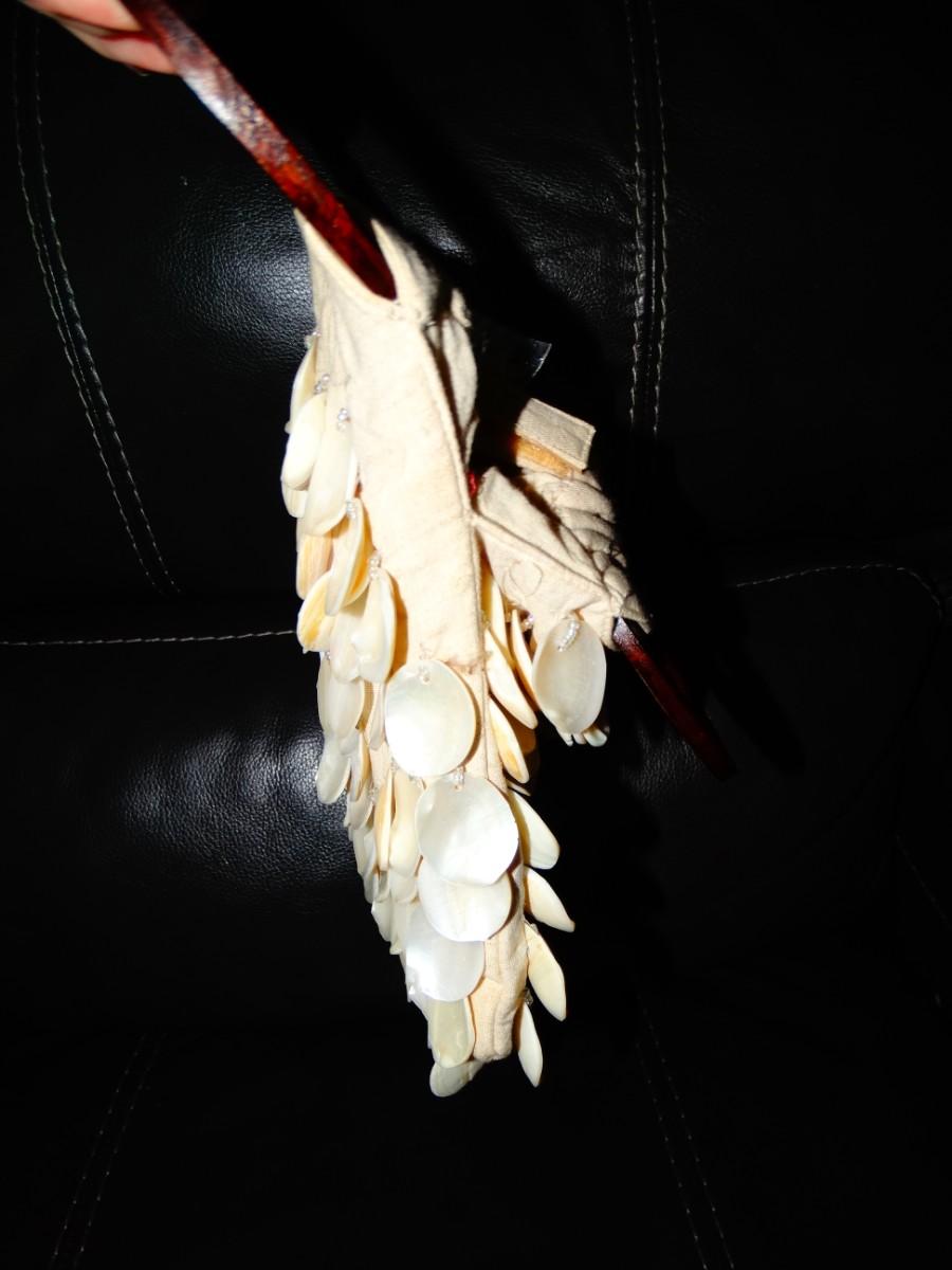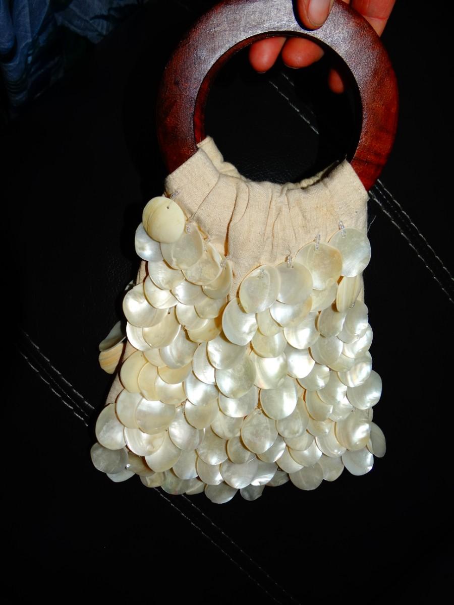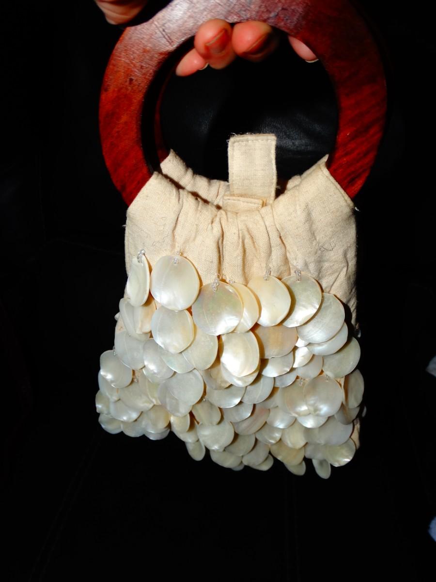 1990's "Two's Company" Vintage Purse Covered in Mother of Pearl & Wood Circular Handles