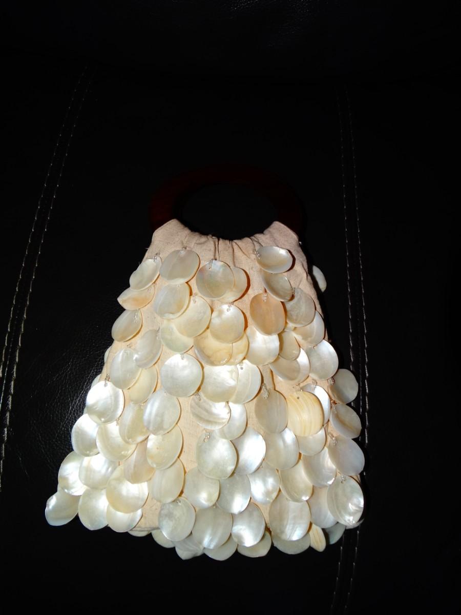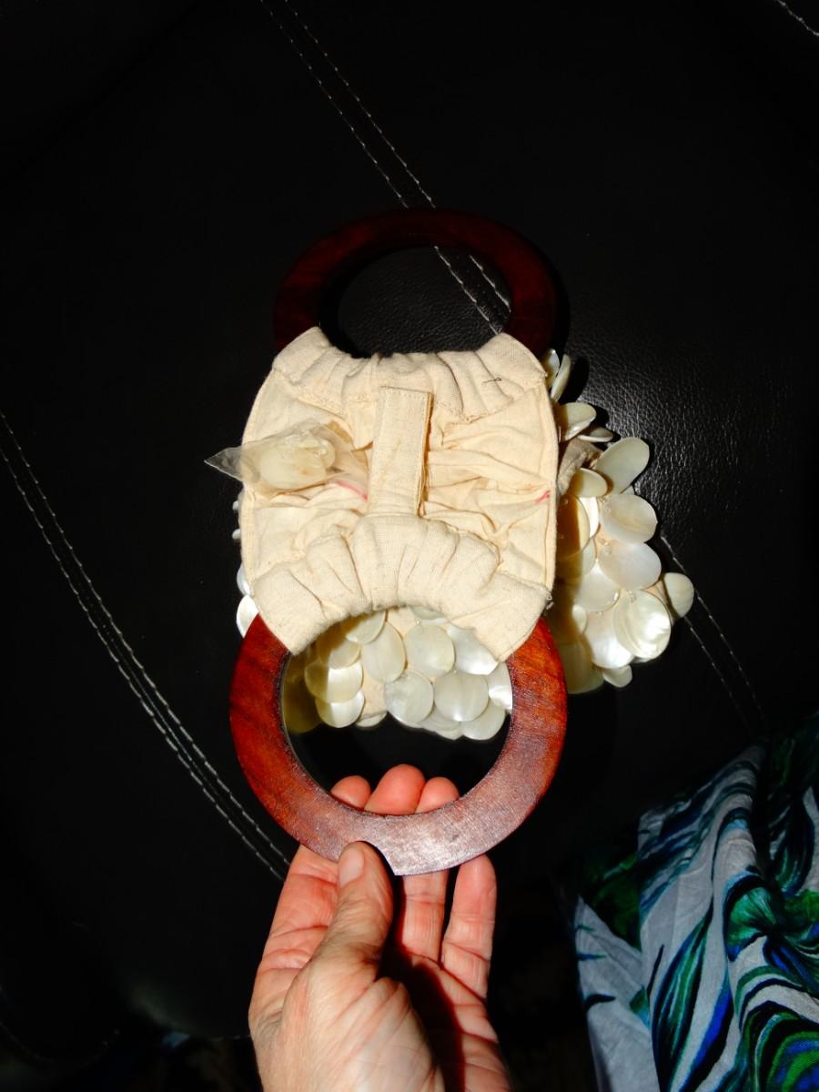 1990's "Two's Company" Vintage Linen Seashell Purse, Mother of Pearl Shells, Cruise ship Purse  - Free shipping